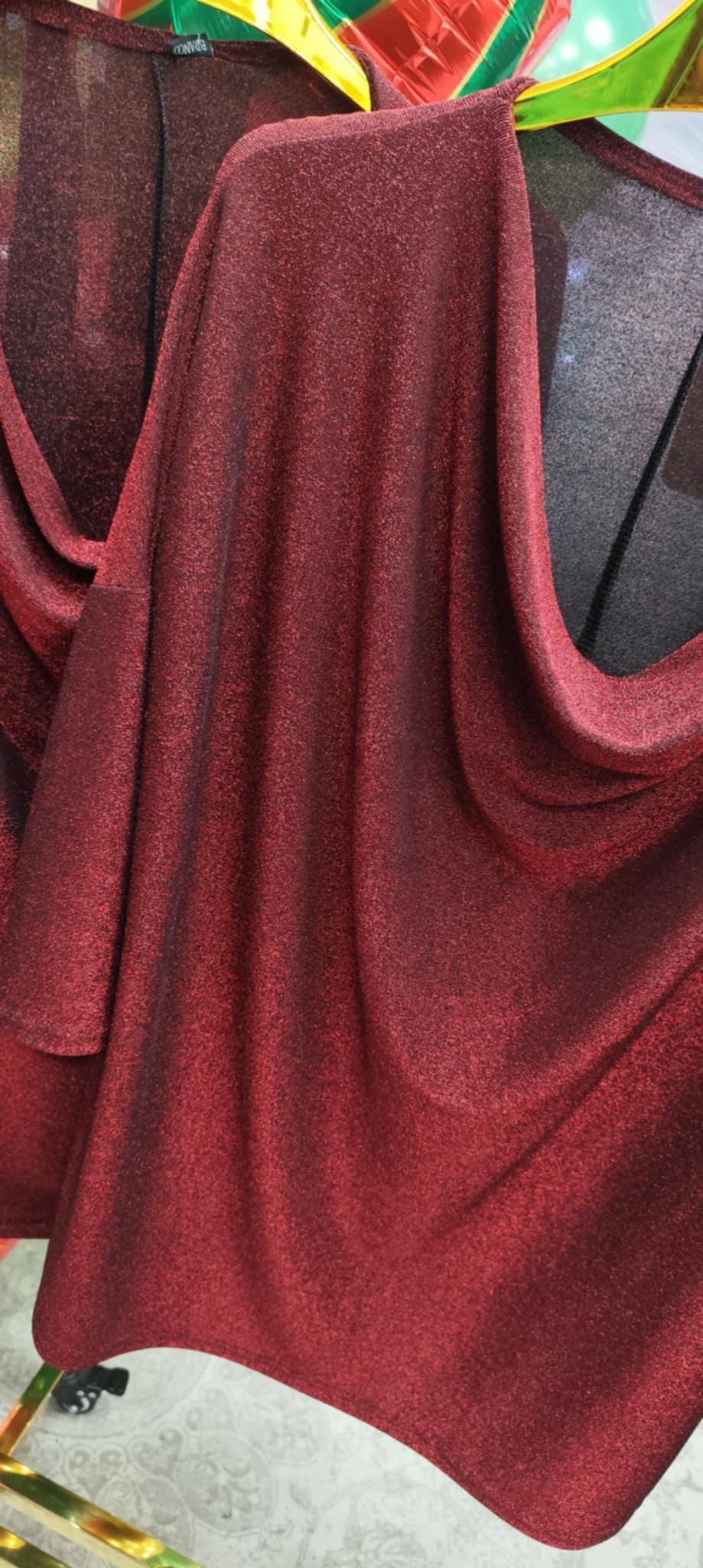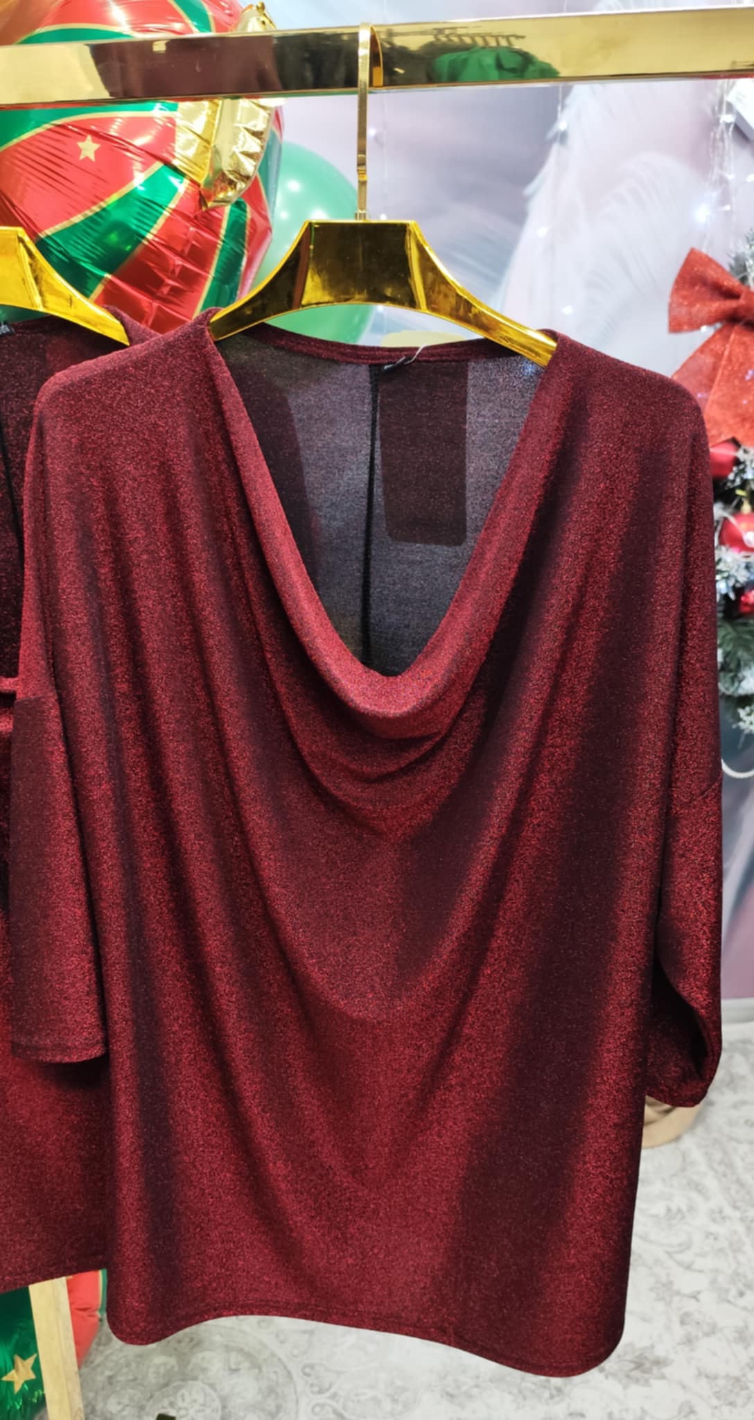 Bluzka WODA polskiego producenta . Materiał -Lureks to rodzaj błyszczącej tkaniny lub dzianiny, która powstaje przez dodanie do tradycyjnego materiału metalicznej, mieniącej się nici, co nadaje jej efekt glamour i często przypomina satynę.