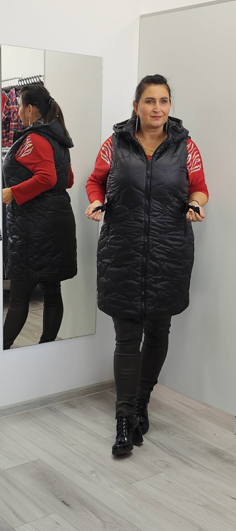 – długi bezrękawnik pikowany w modny orientalny wzór;