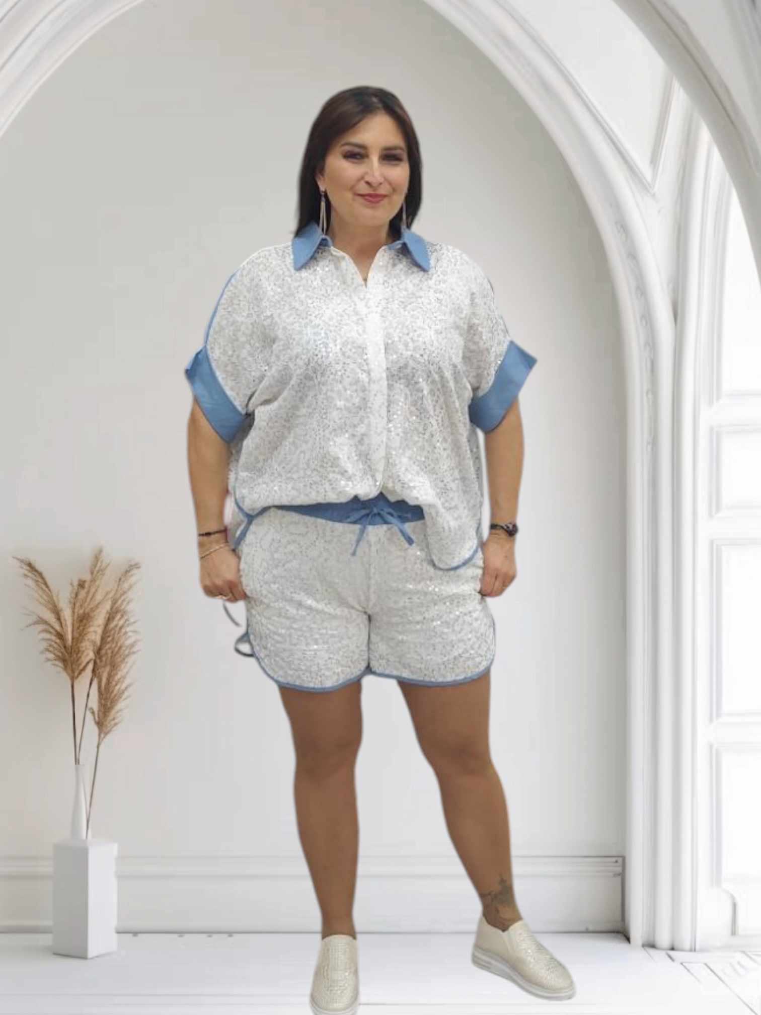 Komplet z szortami, koszula duża oversize, szorty pasują 42/44/46. Komplet włoskiej firmy Zetta Otto.