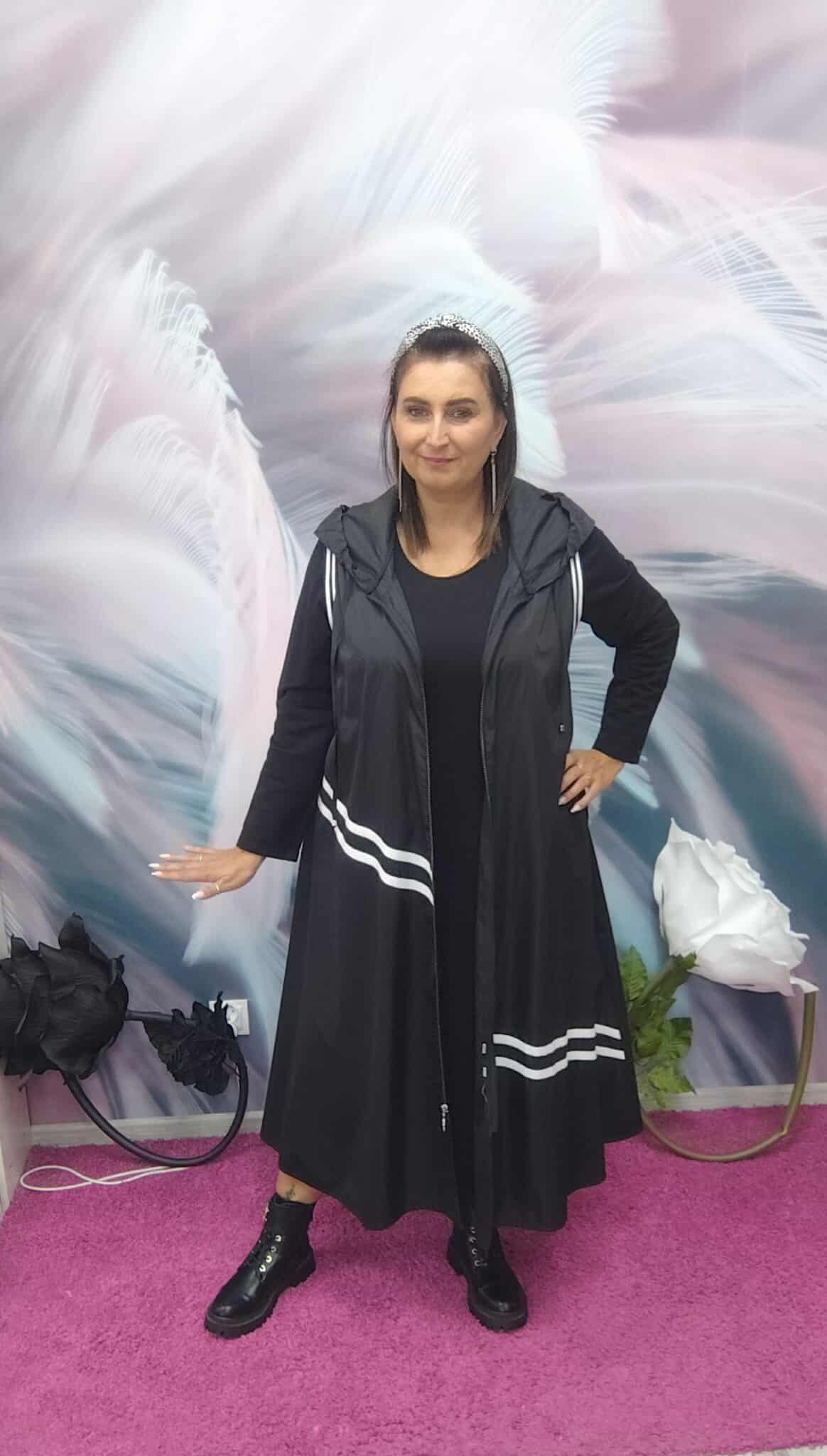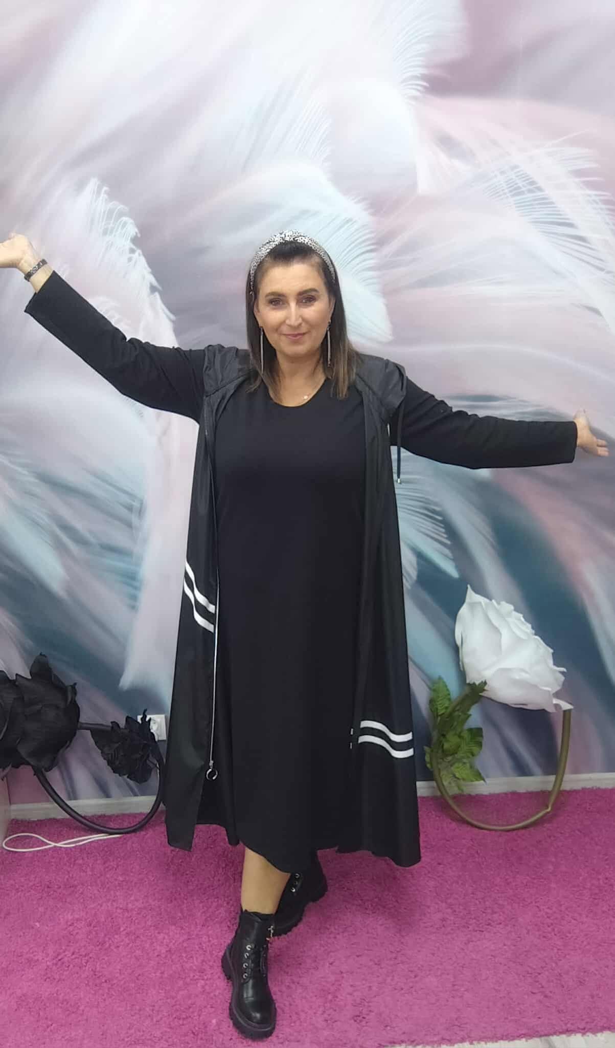 to OVERSIZE W KILKU ROZMIARACH idealna propozycja dla miłośniczek wygody i niebanalnych sportowych stylizacji. Klasyczna sukienka z kamizelką w całości zapinaną na suwak zdobioną białymi taśmami. Polski producent Sasha Ferrano.