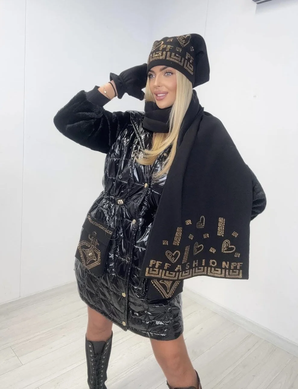 czarny, KOLORY, Komplet czapka/szalik/rękawiczki, KOMPLETY, komplety, NOWOŚCI, oversize, PAPARAZZI FASHION, PREMIUM, ROZMIARY