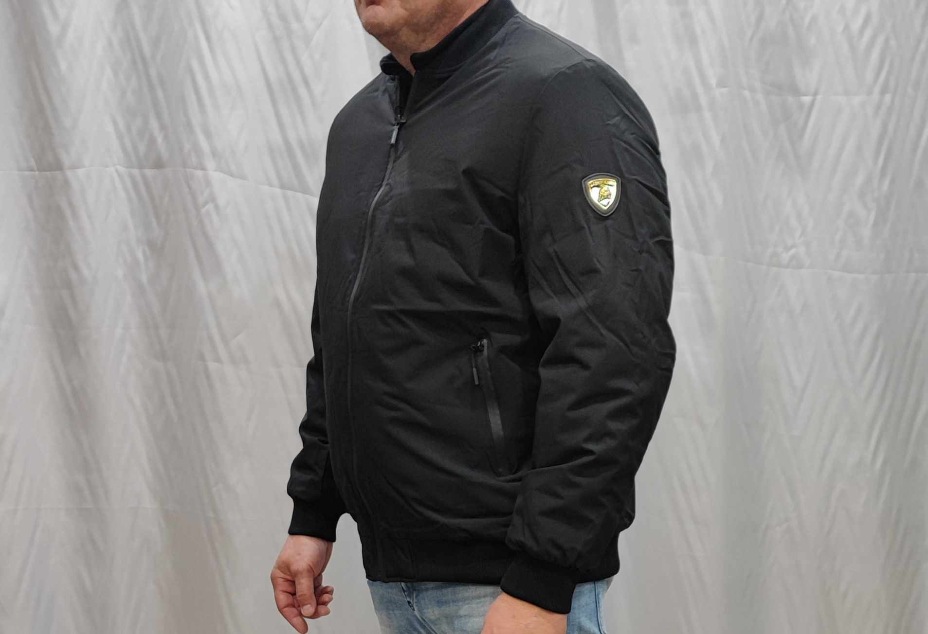 Kurtka ocieplana jesienno-zimowa. Na ramieniu logo.