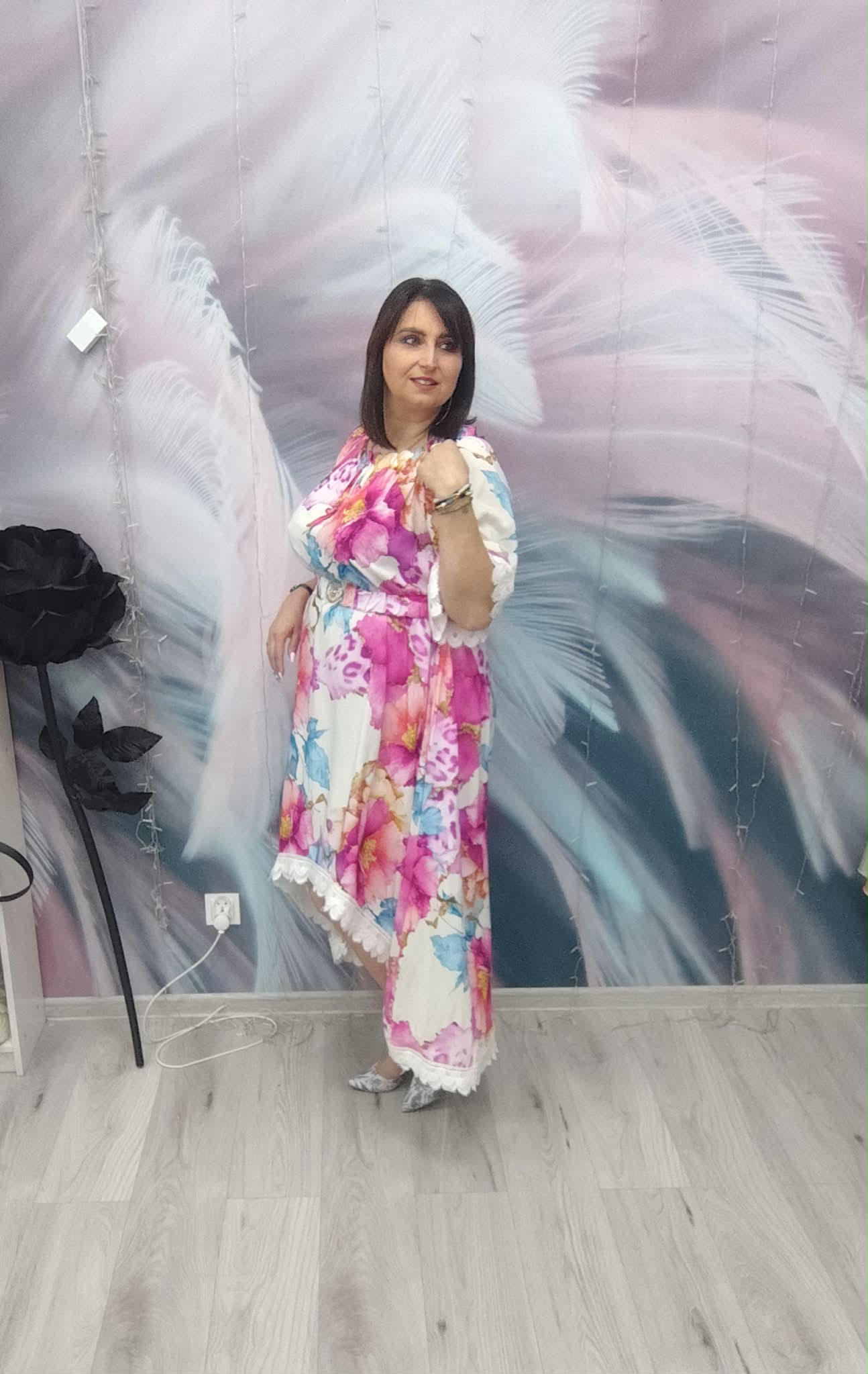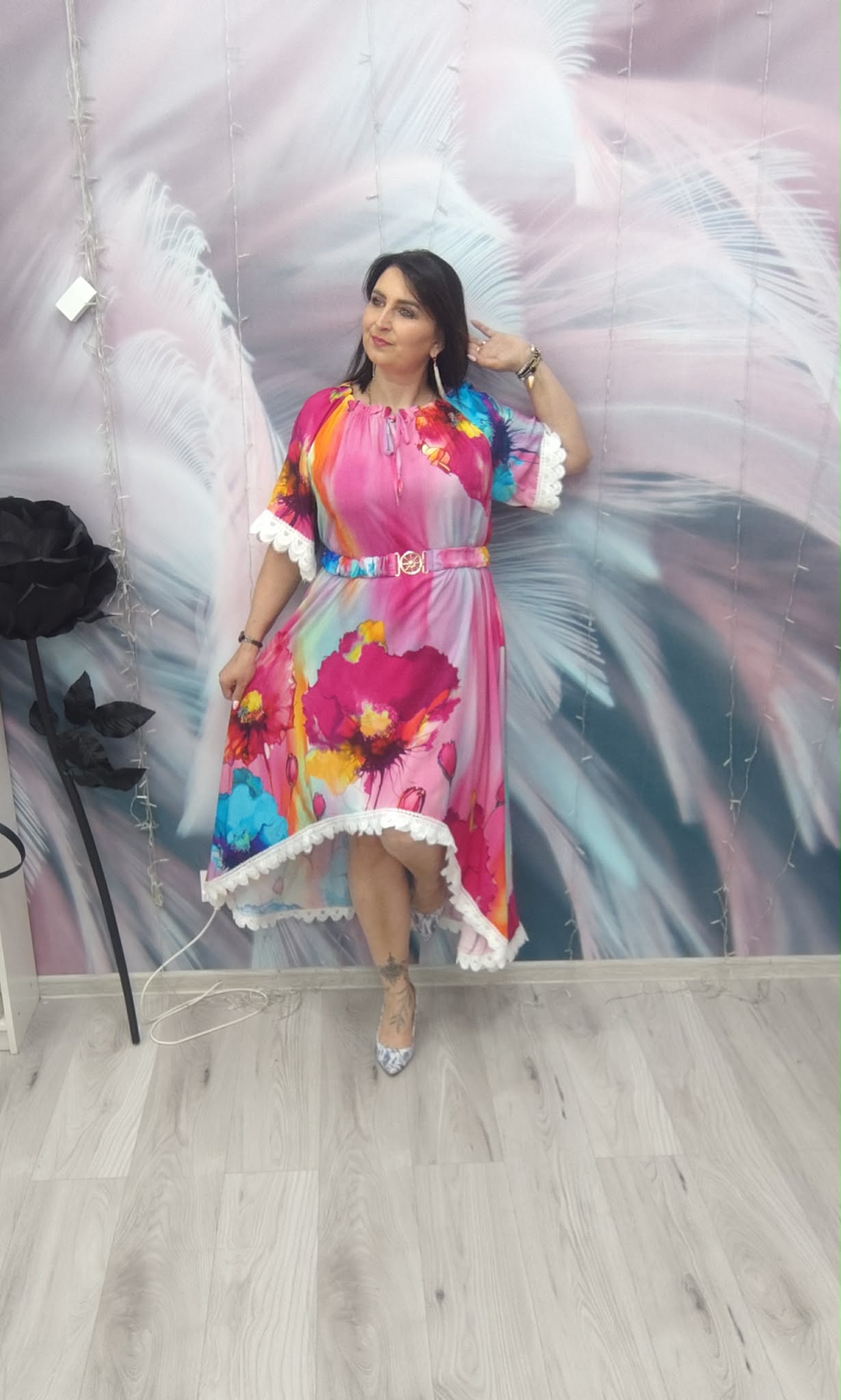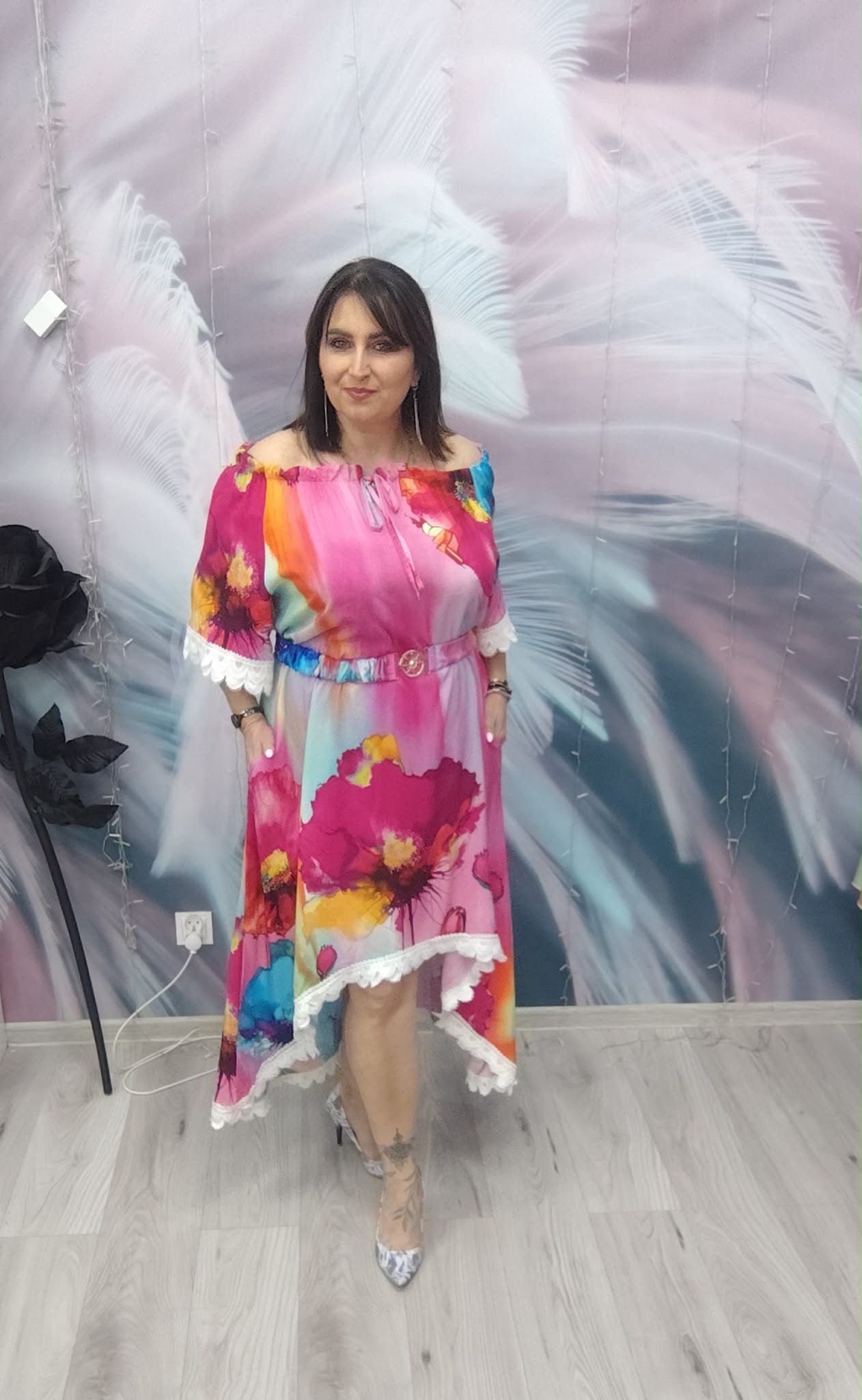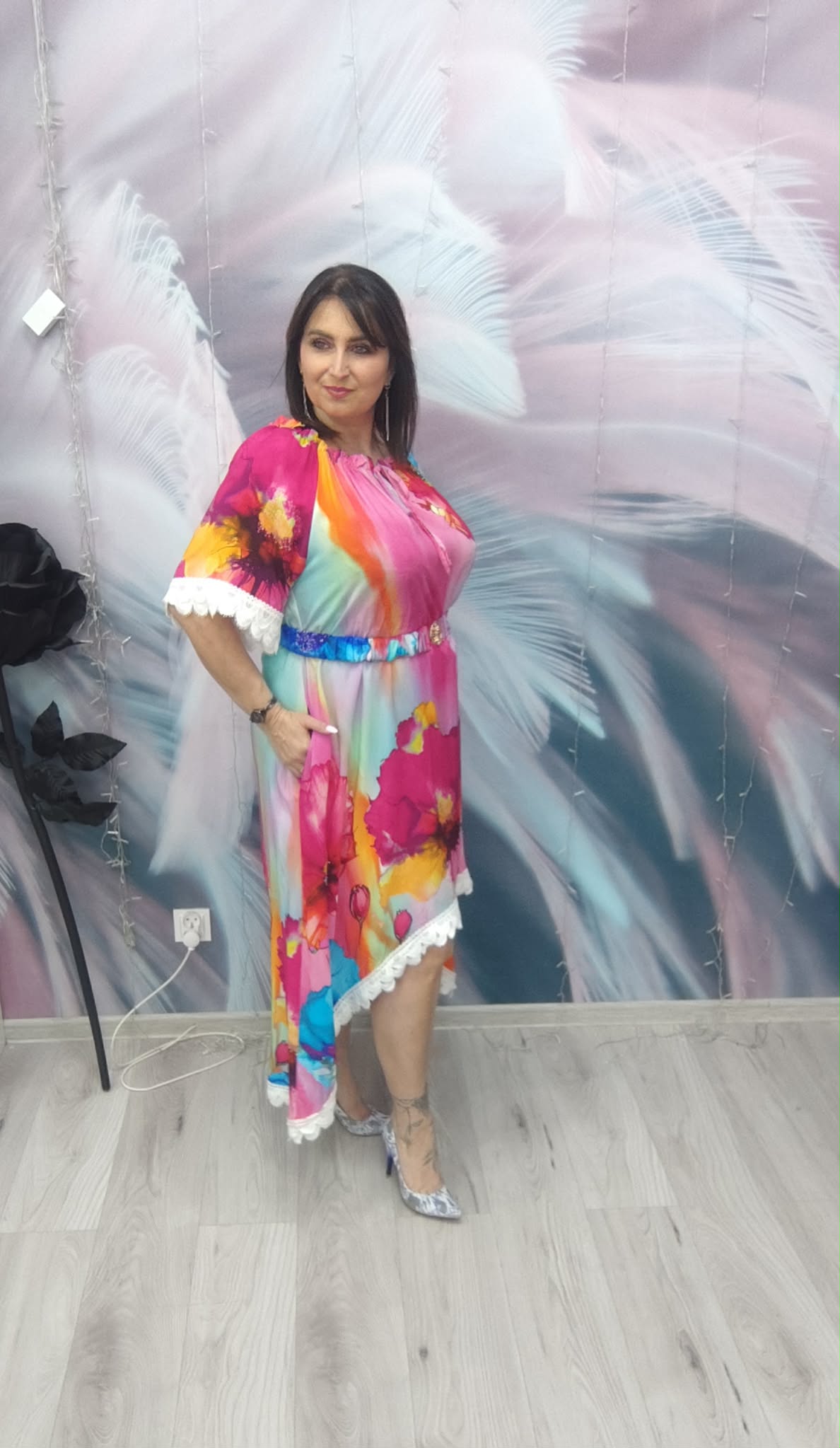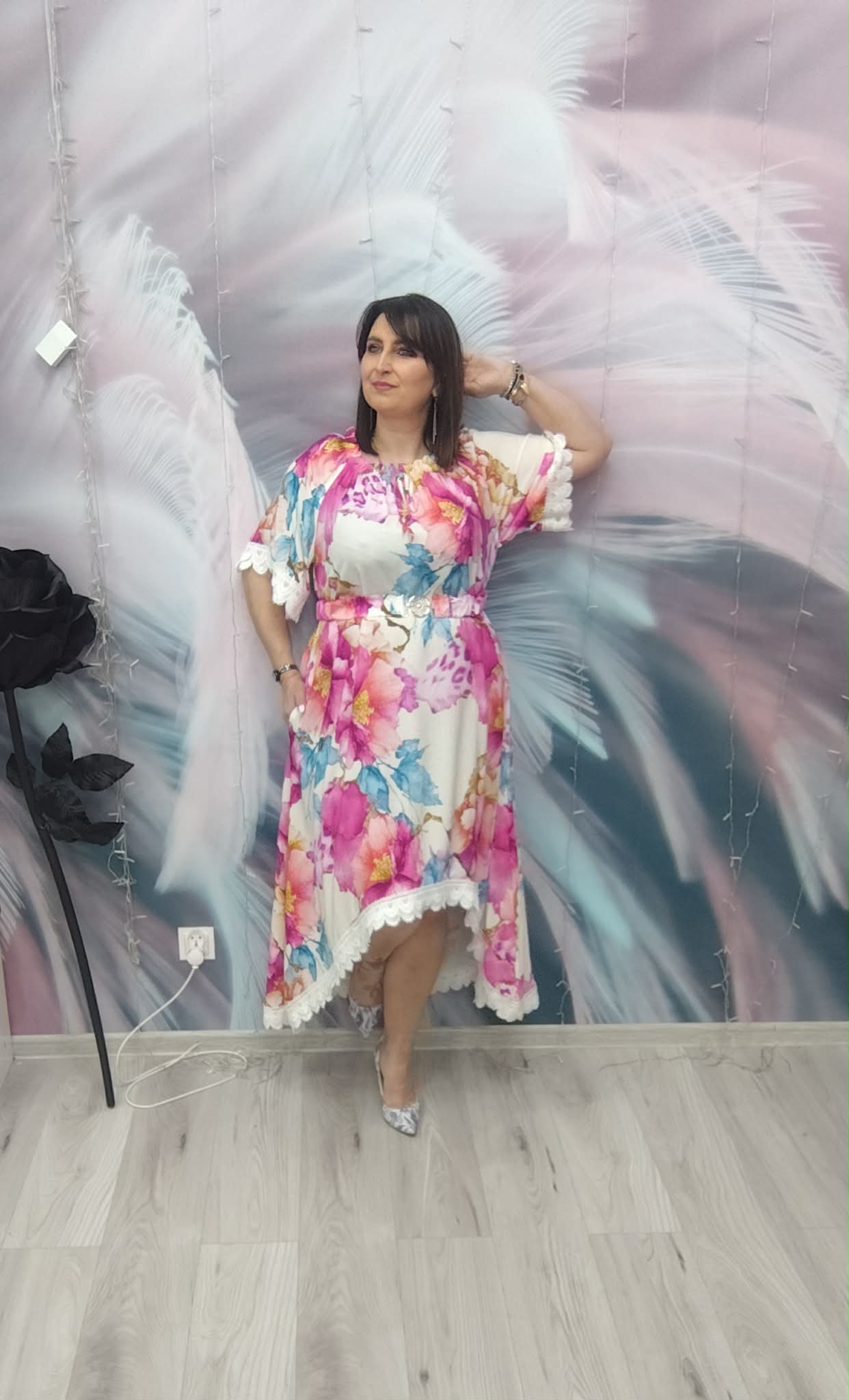 Zjawiskowa sukienka o kobiecym, zwiewnym kroju, która przyciąga spojrzenia intensywnymi kolorami i efektownym fasonem. Idealna na wyjątkowe okazje, ale też na letnie wyjścia, kiedy chcesz wyglądać lekko i stylowo.