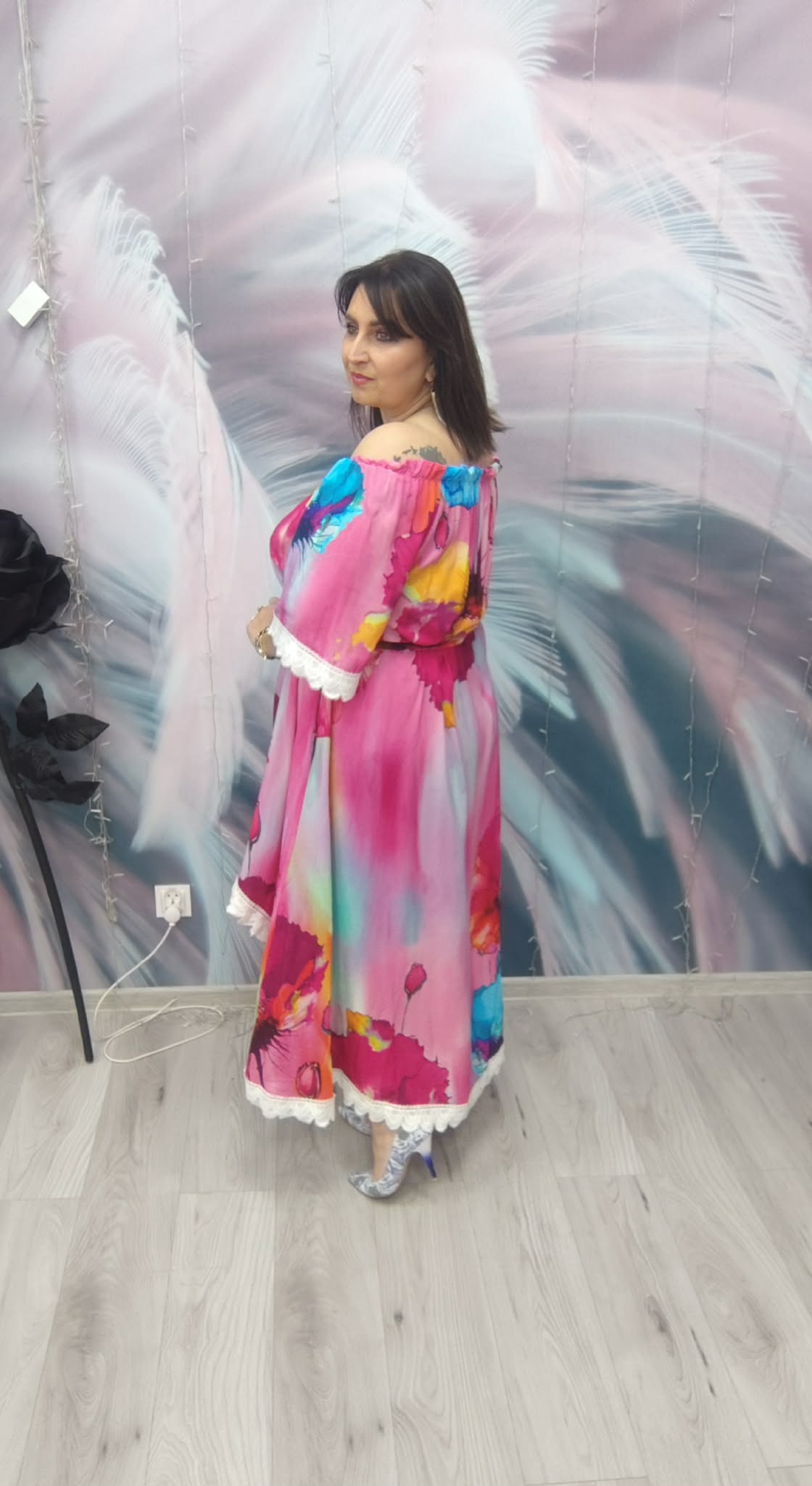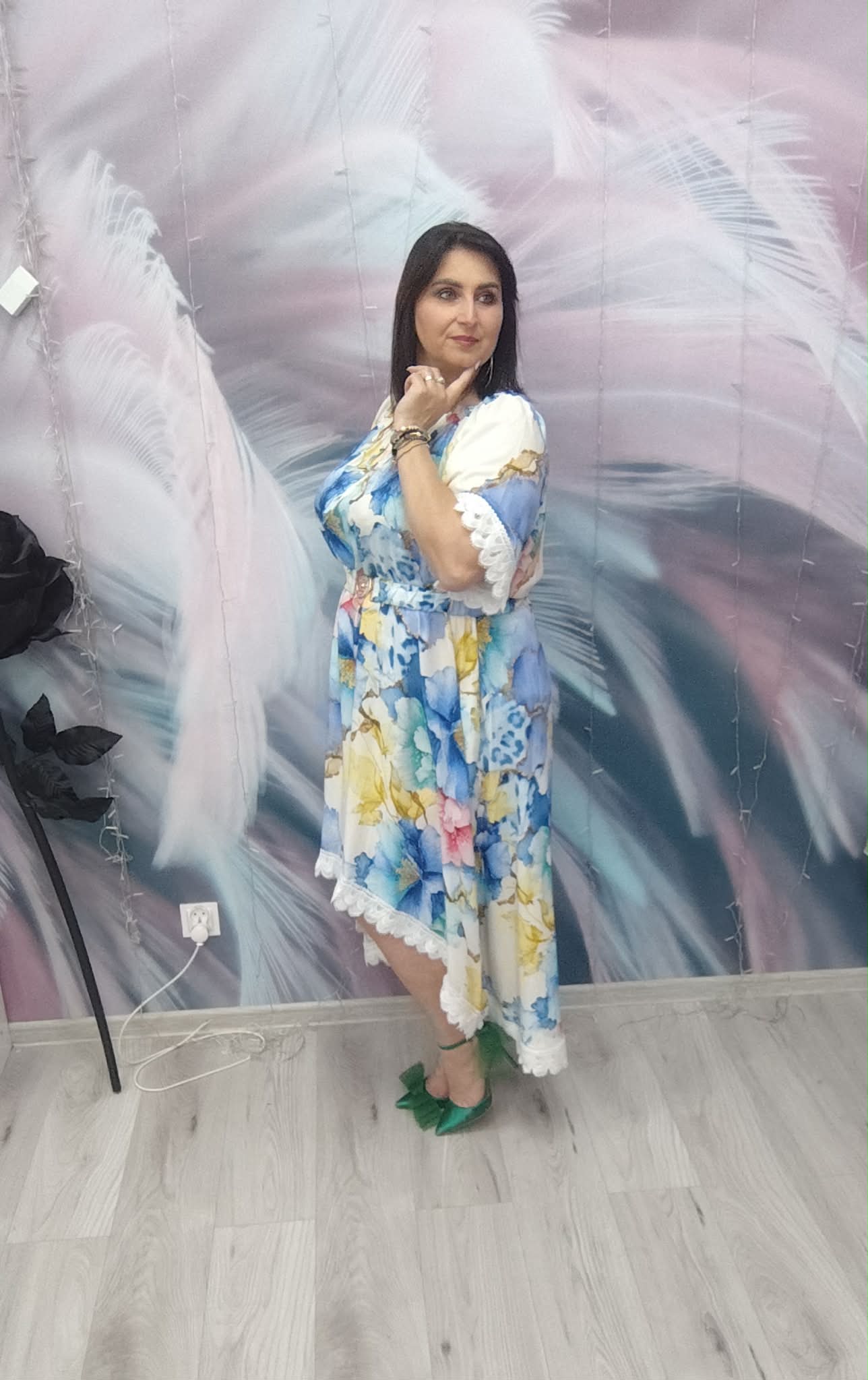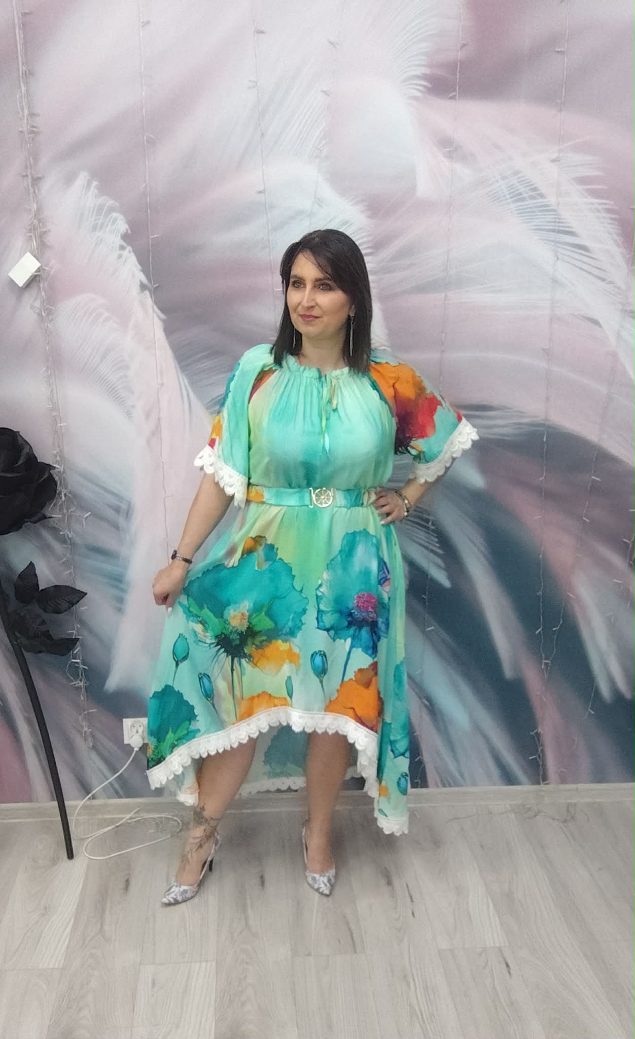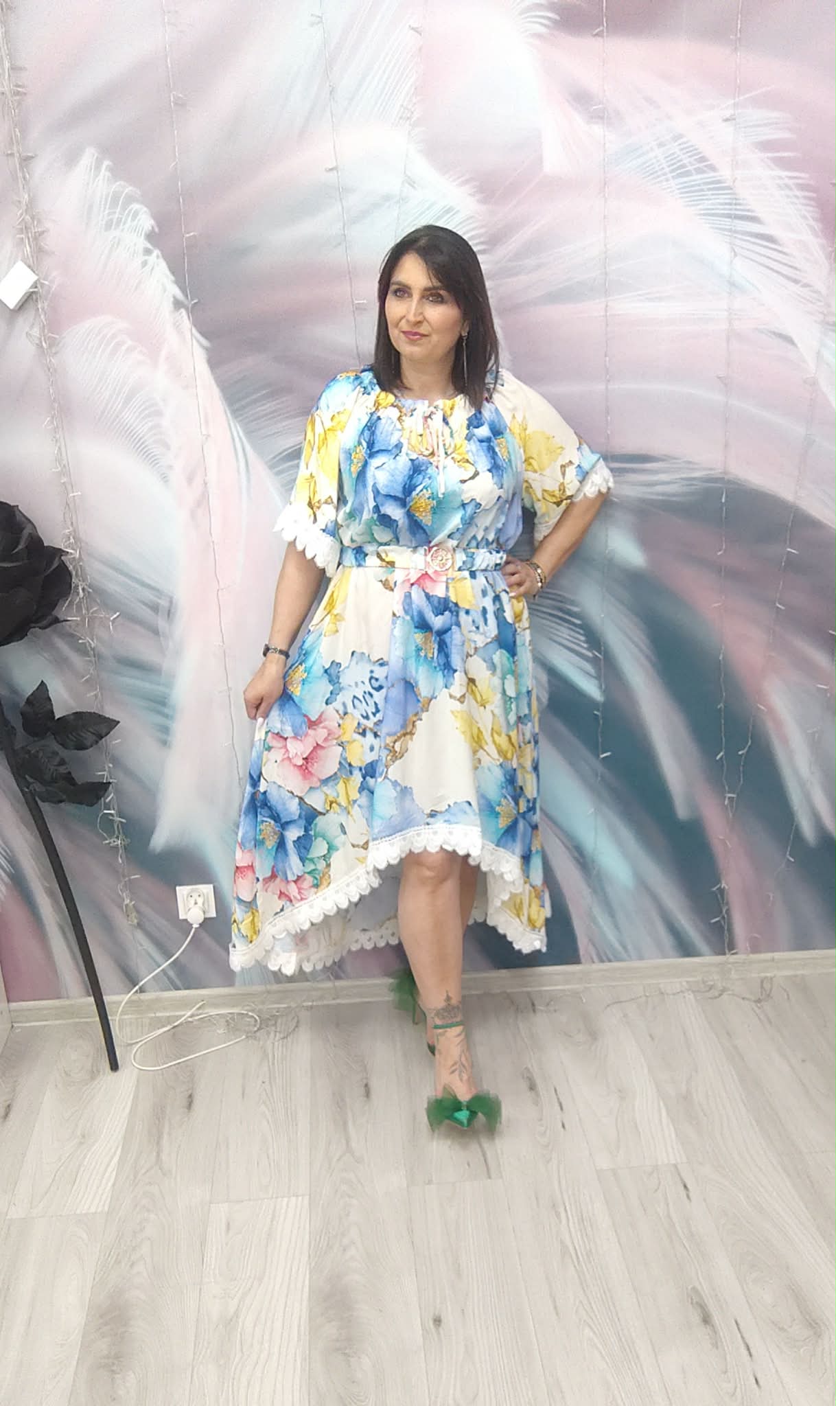 Zjawiskowa sukienka o kobiecym, zwiewnym kroju, która przyciąga spojrzenia intensywnymi kolorami i efektownym fasonem. Idealna na wyjątkowe okazje, ale też na letnie wyjścia, kiedy chcesz wyglądać lekko i stylowo.