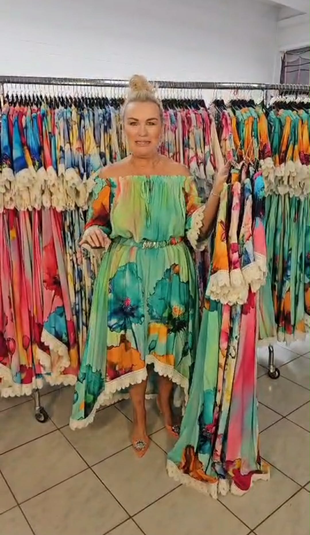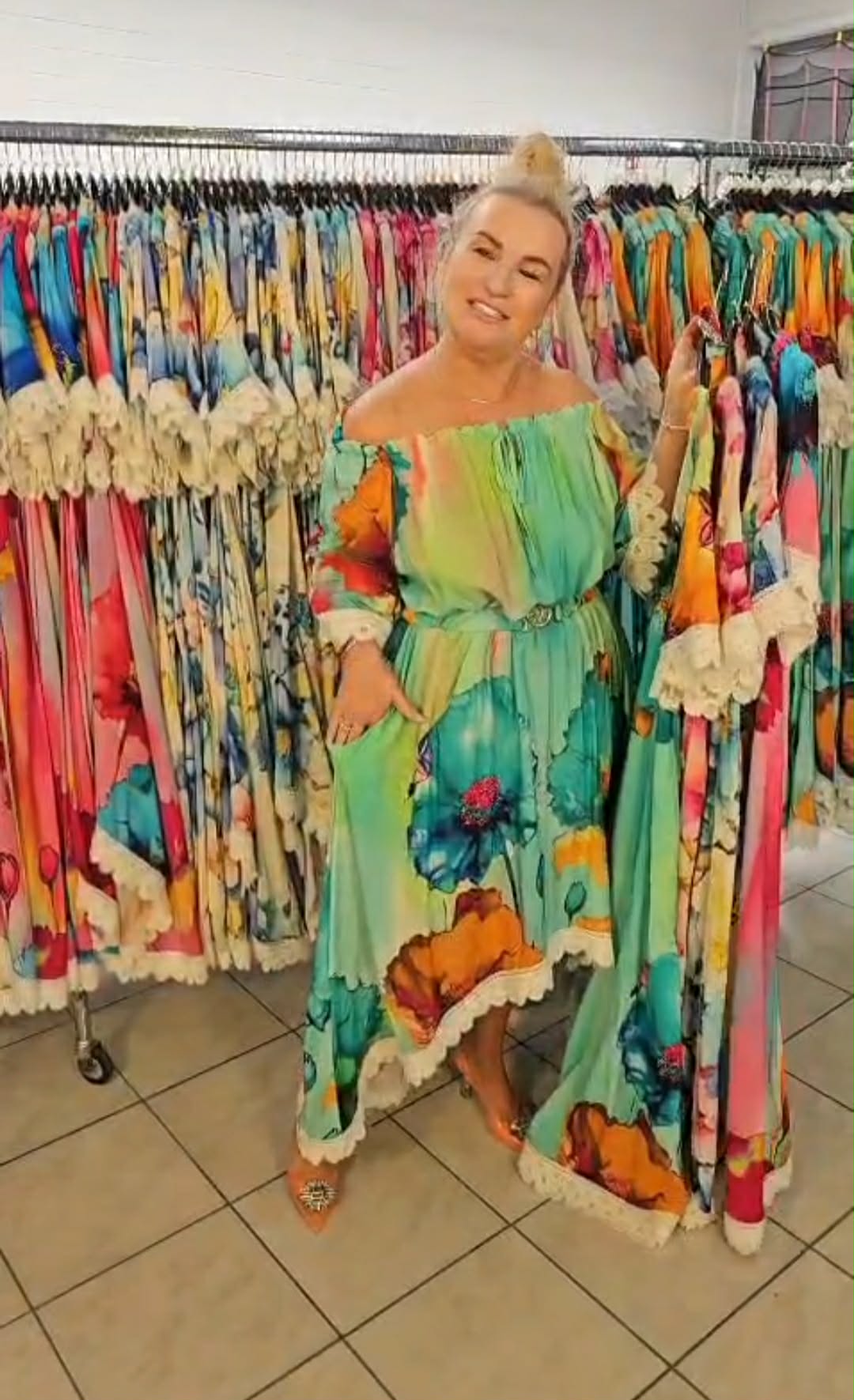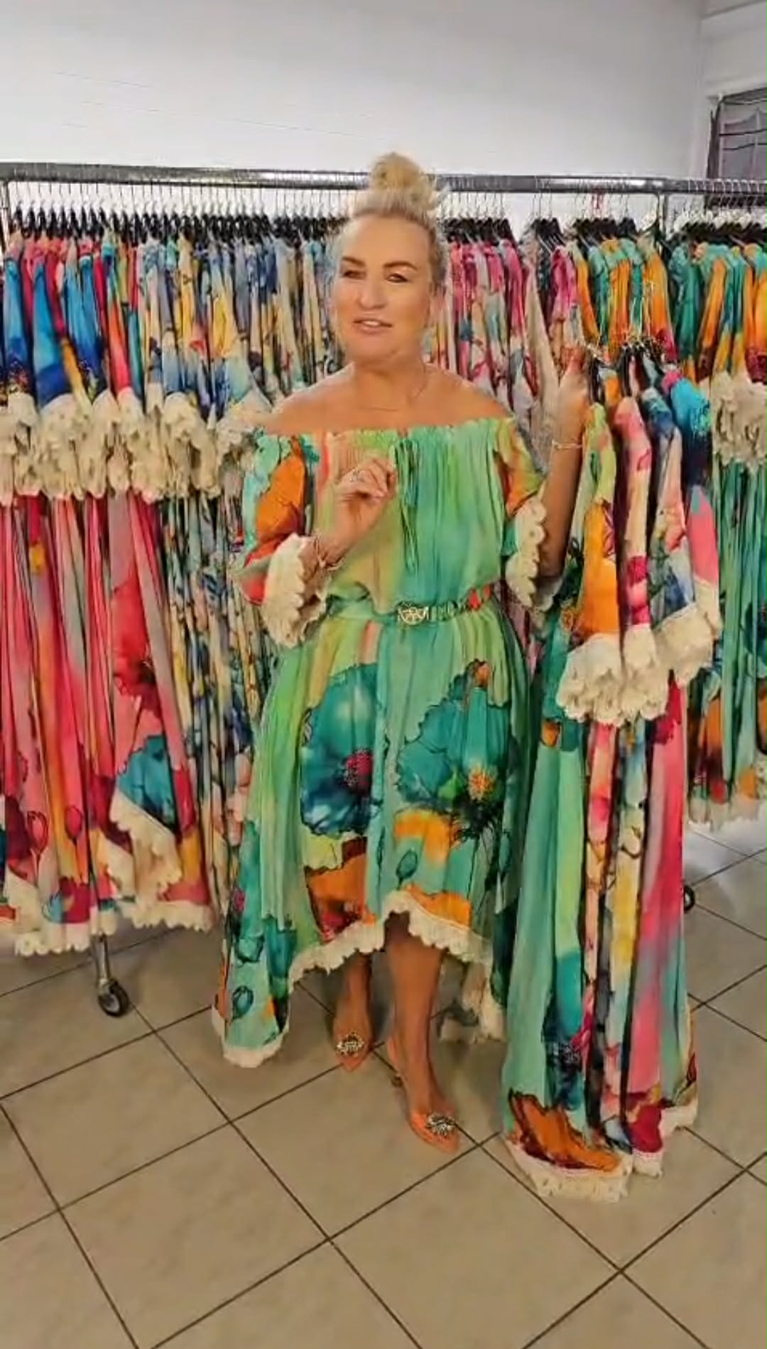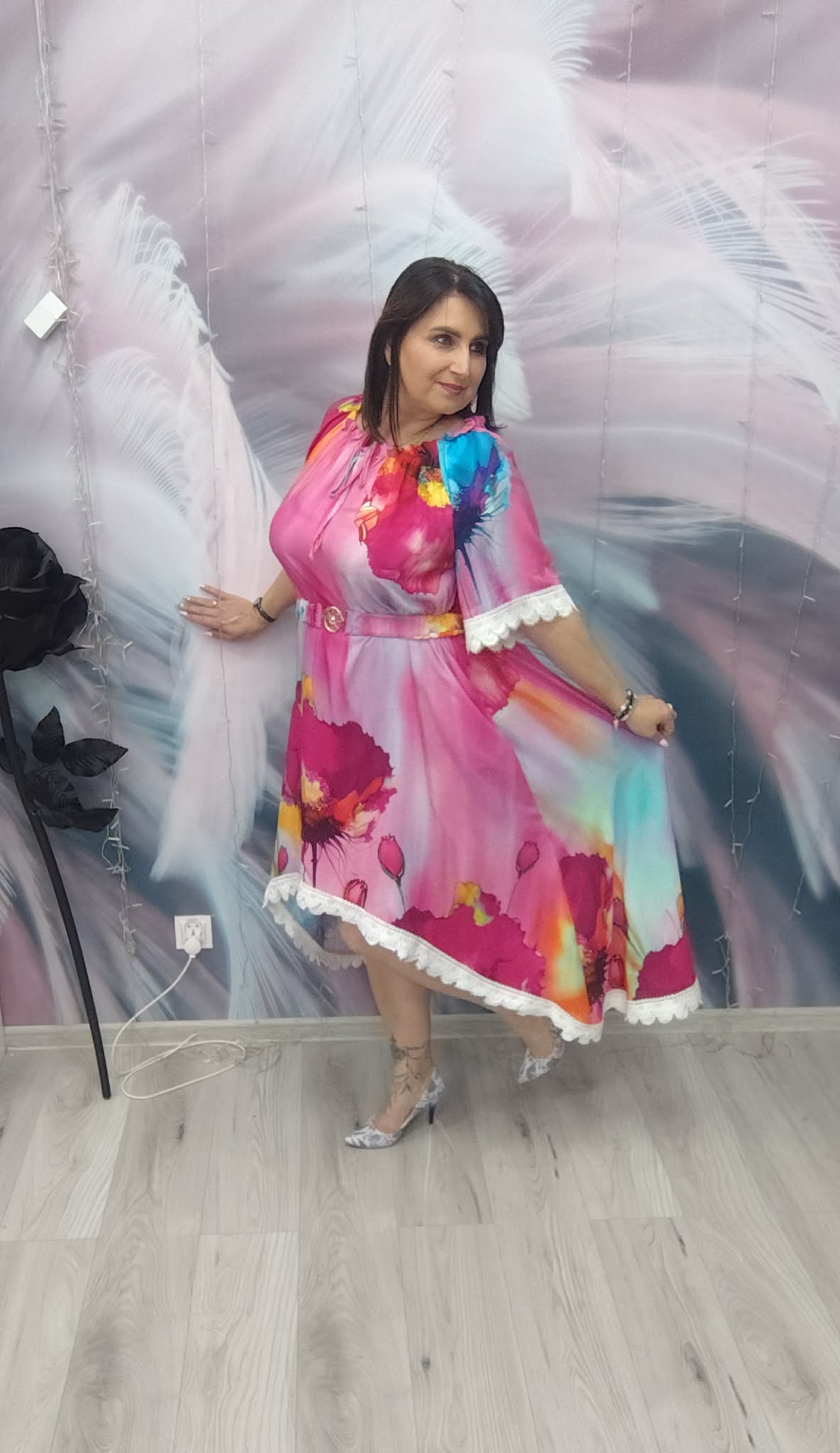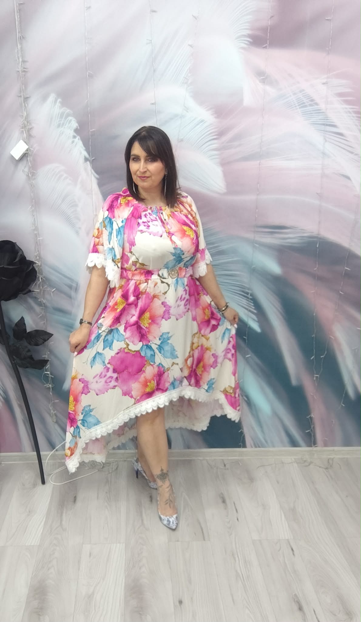 Zjawiskowa sukienka o kobiecym, zwiewnym kroju, która przyciąga spojrzenia intensywnymi kolorami i efektownym fasonem. Idealna na wyjątkowe okazje, ale też na letnie wyjścia, kiedy chcesz wyglądać lekko i stylowo.