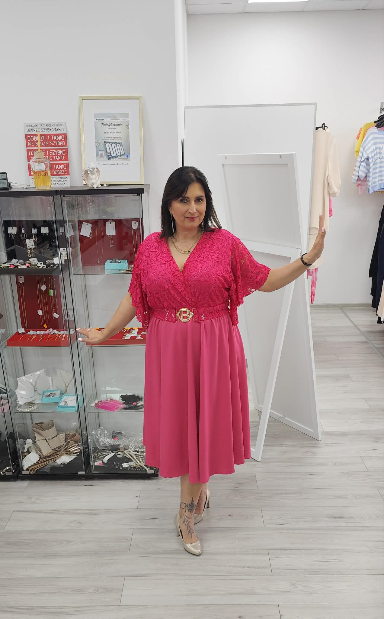 | kolor | fuksja, czerwony, beżowy |