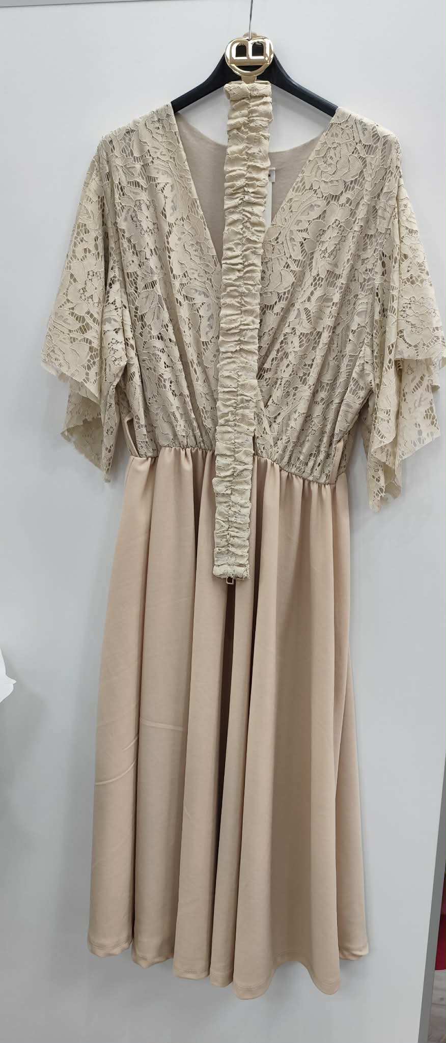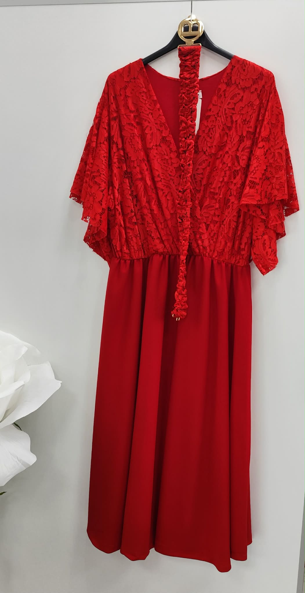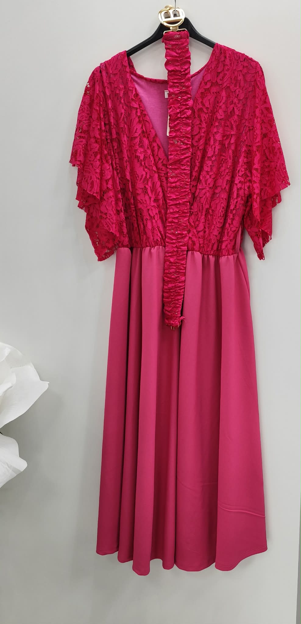 Sukienka z ozdobna górą z koronki. w zestawie pasek.