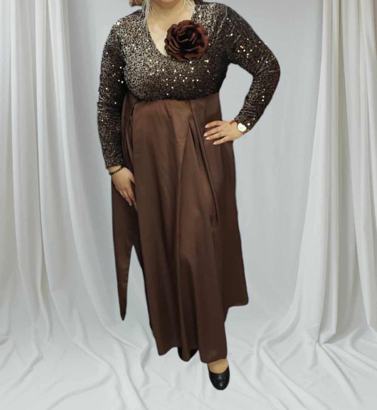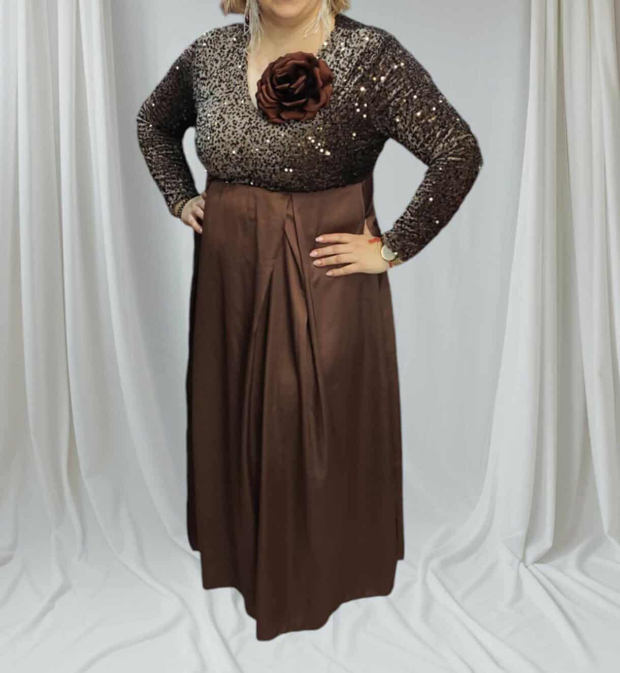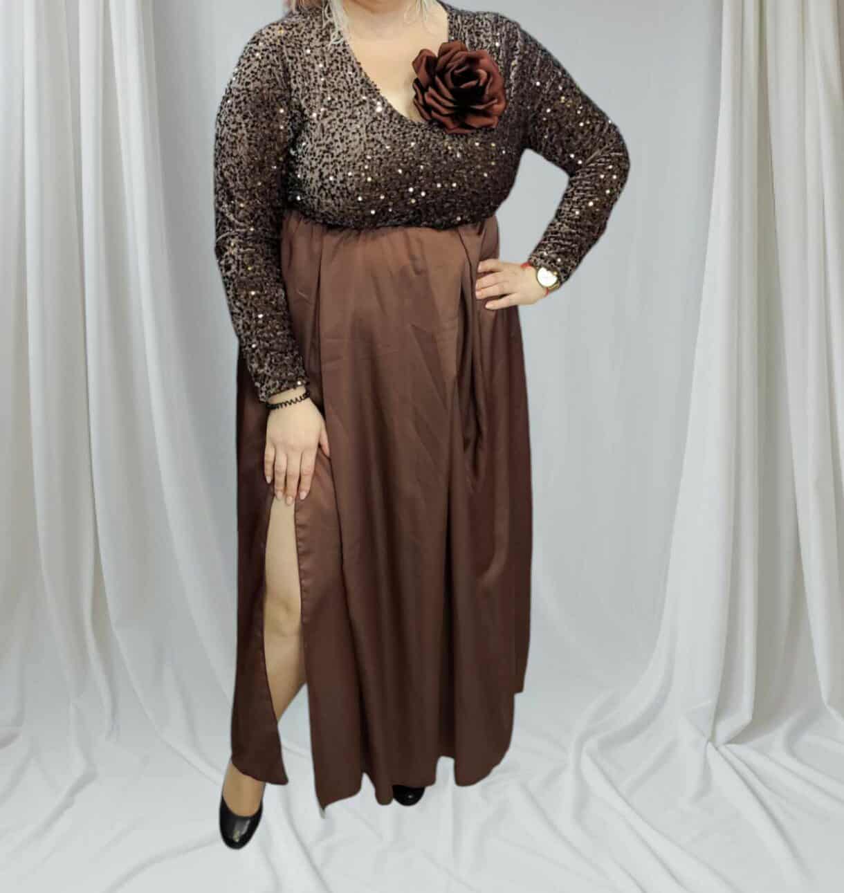 Sukienka z odpinanym kwiatem z piórek. Góra cekiny, dół atłas. Rozmiar oversize ładnie leży 40,42,44 ,46