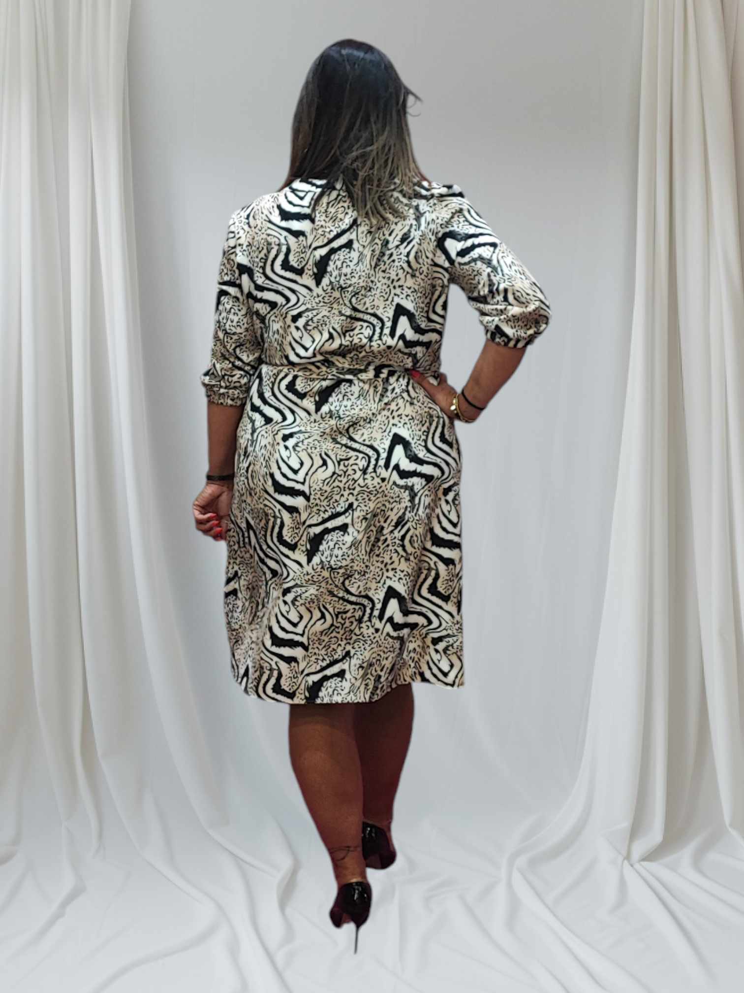 Sukienka polskiego producenta, jakość premium. Rozpinana do pasa złotymi guzikami. W zestawie pasek.