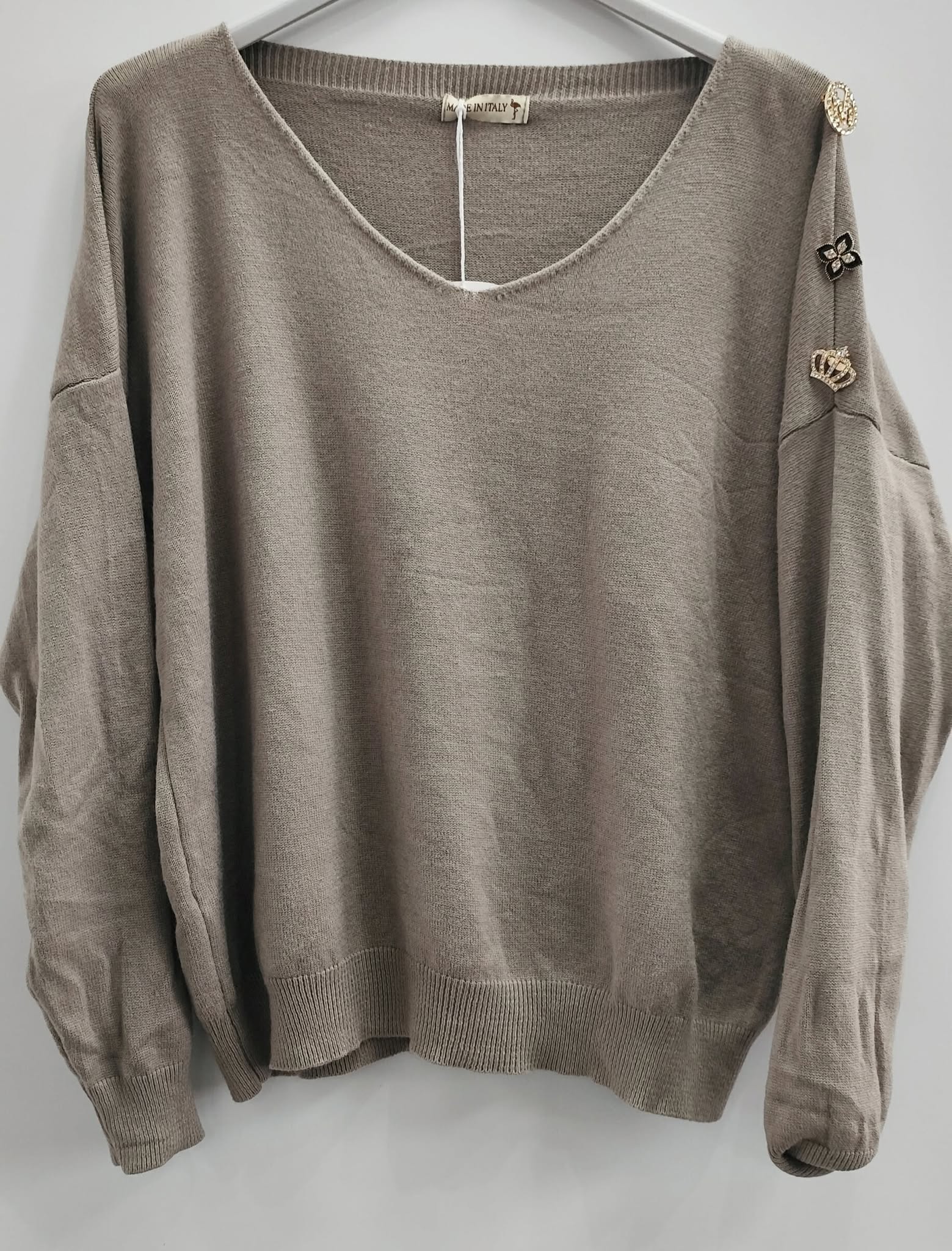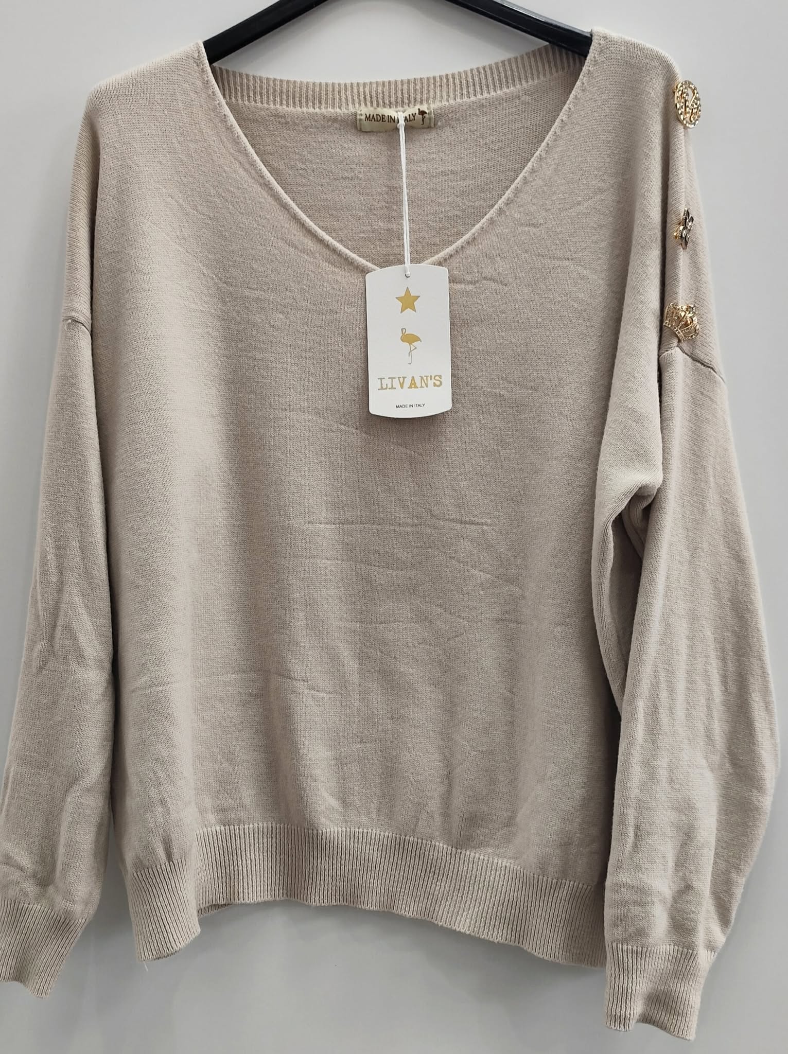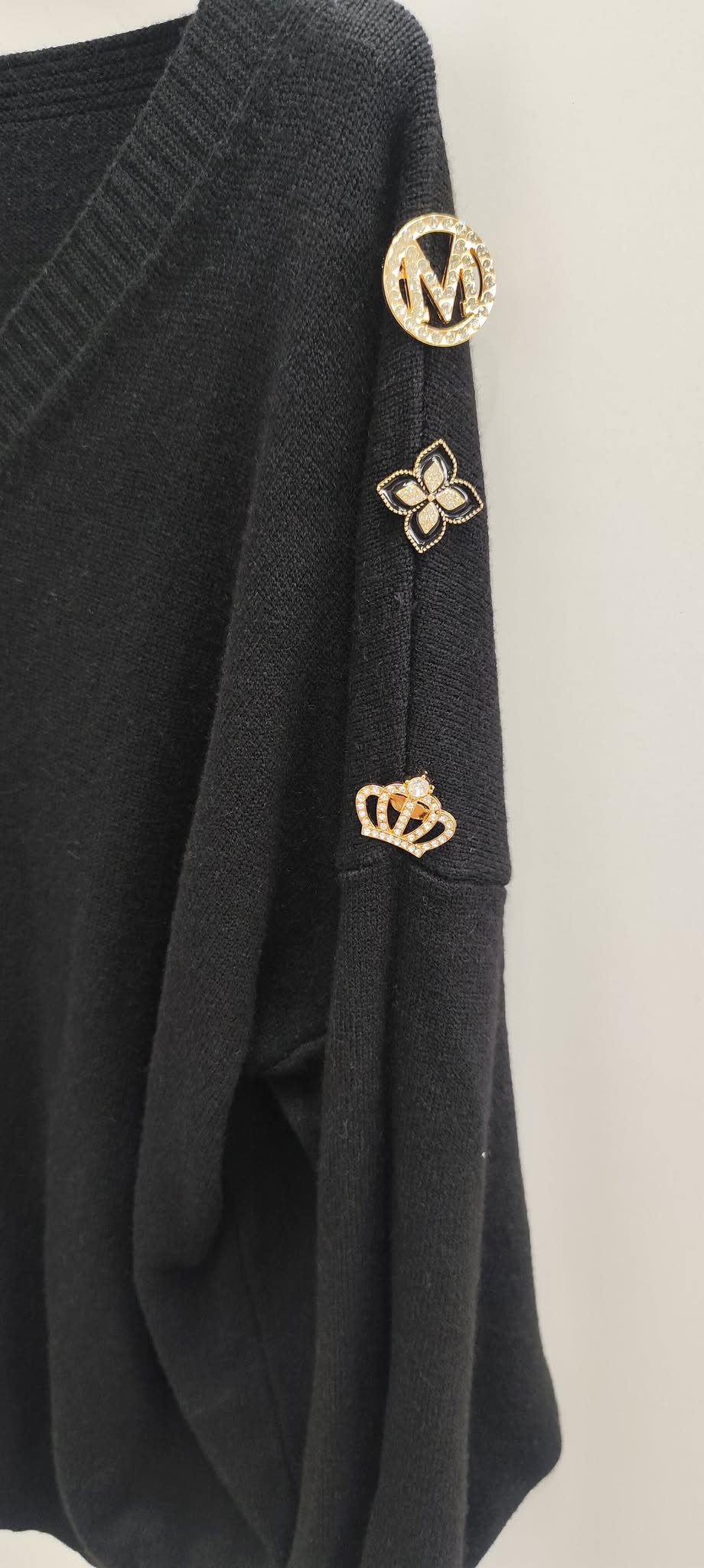 Sweter renomowanej marki LIVANS.Wzestawie3ozdobnebroszki, jakość PREMIUM.